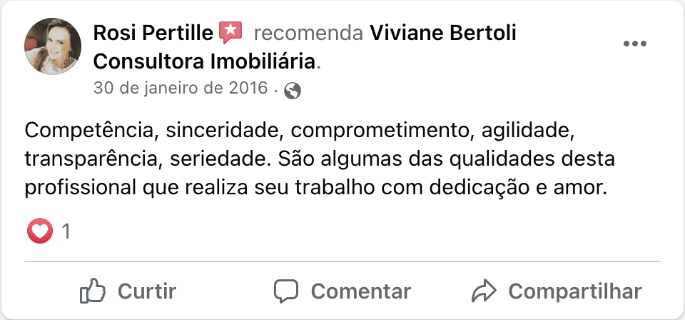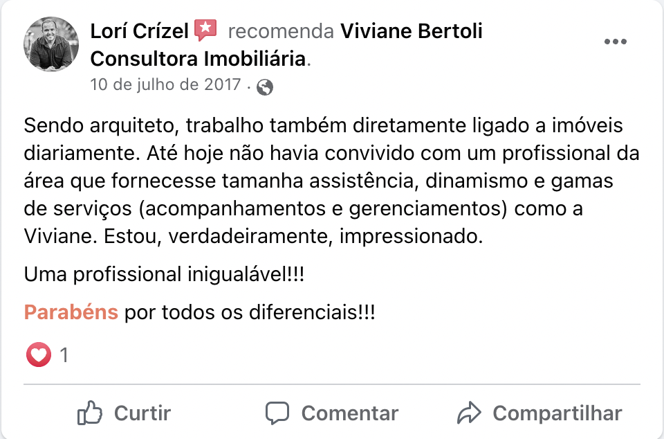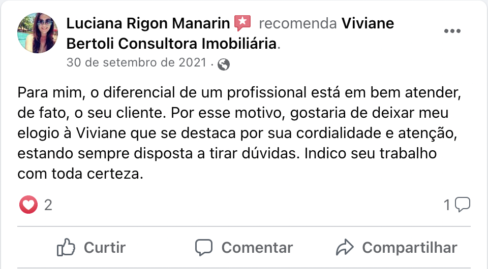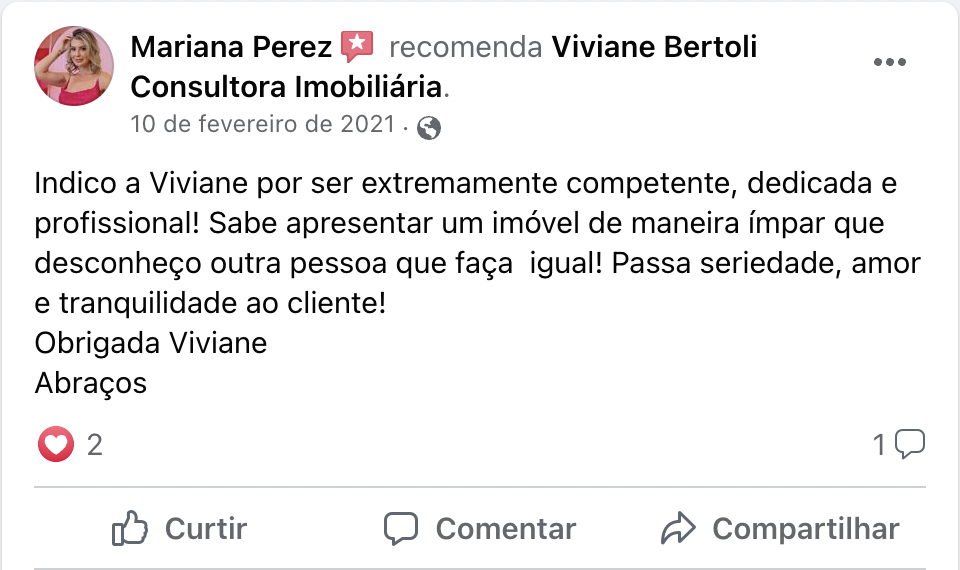 Oi, meu nome é Viviane Bertoli, sou Corretora de Imóveis independente há 24 anos.